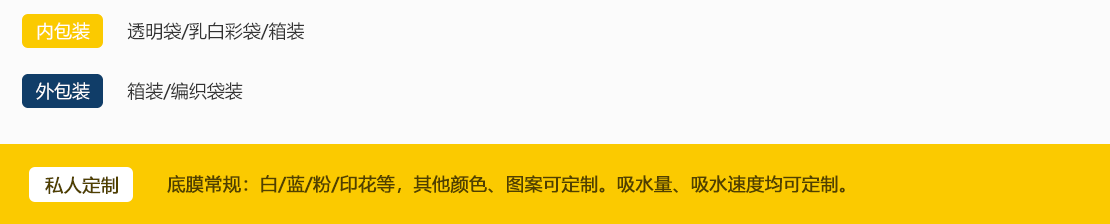 🎨 全方位定制:支持尺寸、PE膜颜色、印花、吸水性能深度定制。