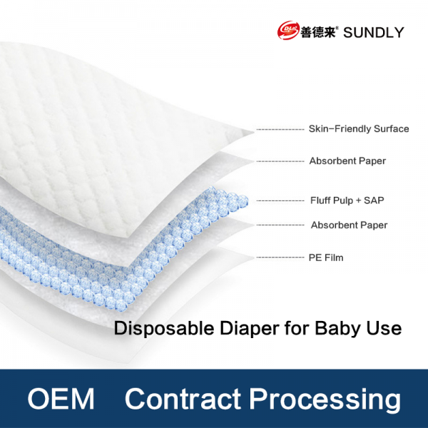 「5-Layer Structure」 Non-woven Fabric/Absorbent Paper/Wood Pulp+SAP/ Absorbent Paper/PE Film